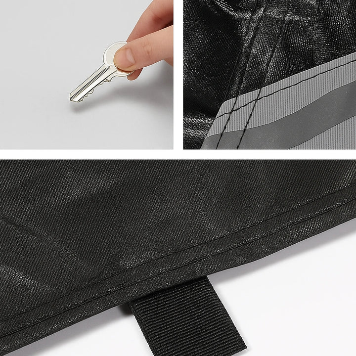 Elastic edges and adjustable buckle straps keep the cover secure duringstrong windsor storms. Noflapping, no shifting—just a snug, tailored fit. Reflective strips are included to boost nighttime safety.